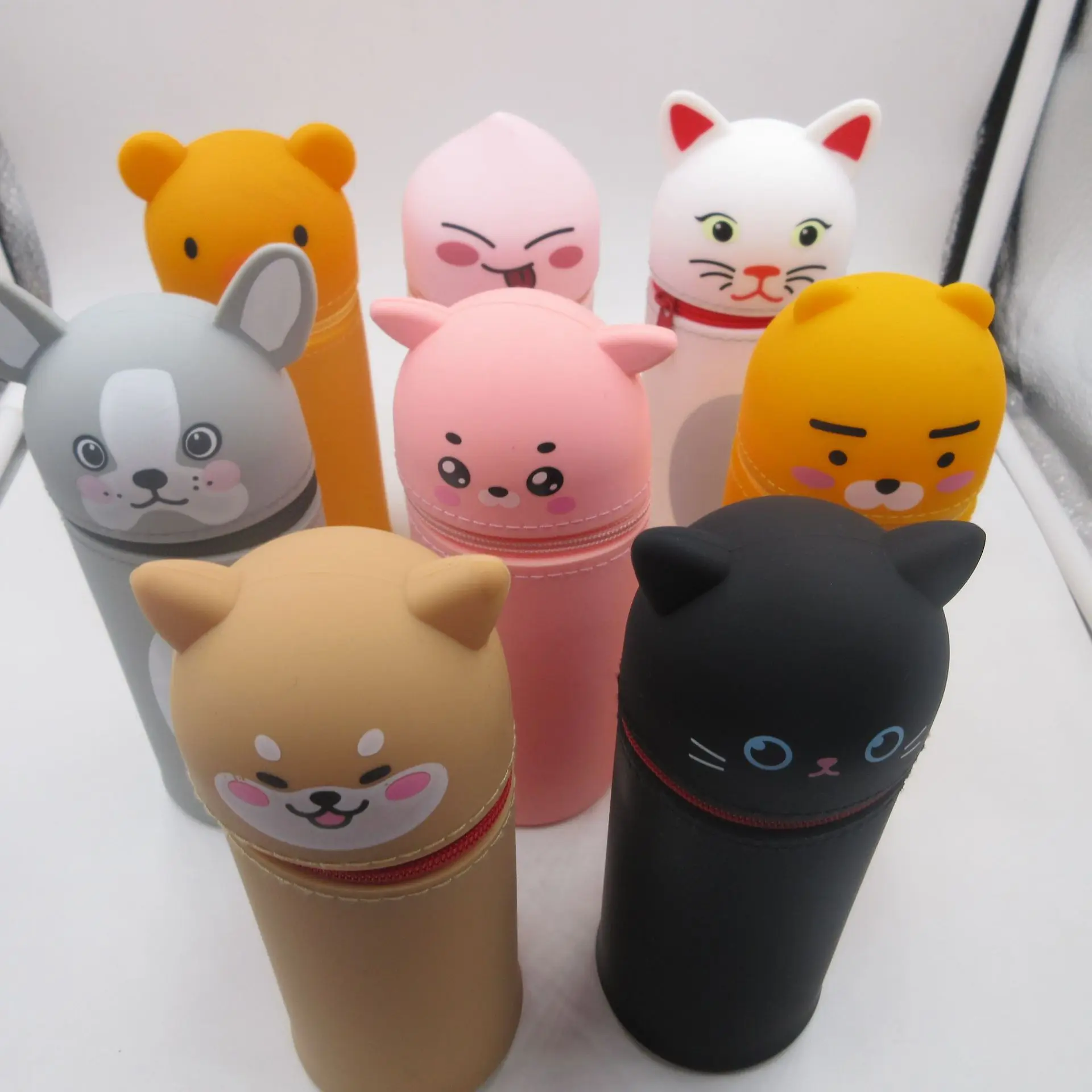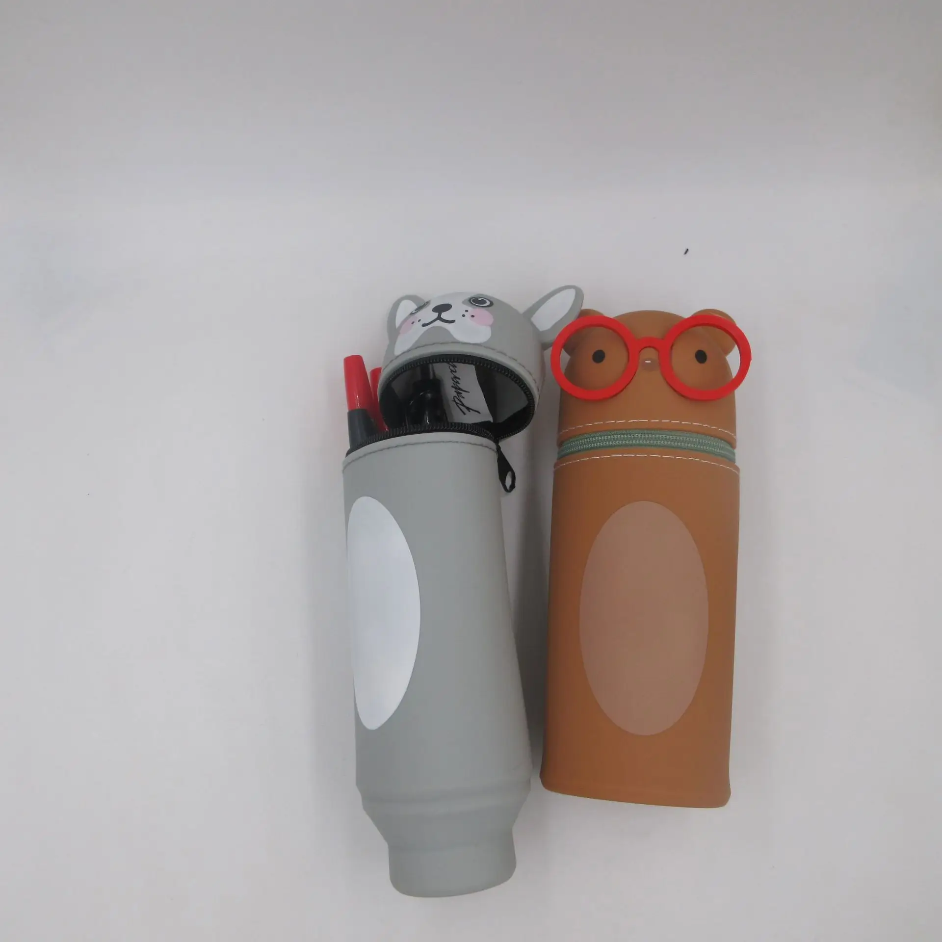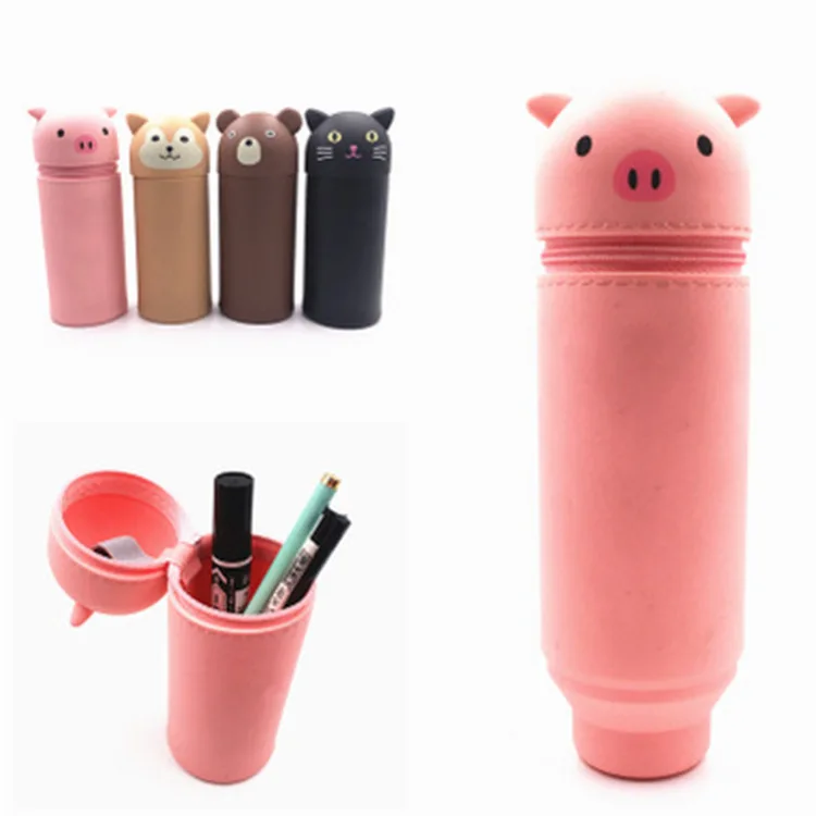 Big Capacity Custom Kids School Girls 3d Stand up Pen Holder Bag Cute Silicone Pencil Case with Animal Face