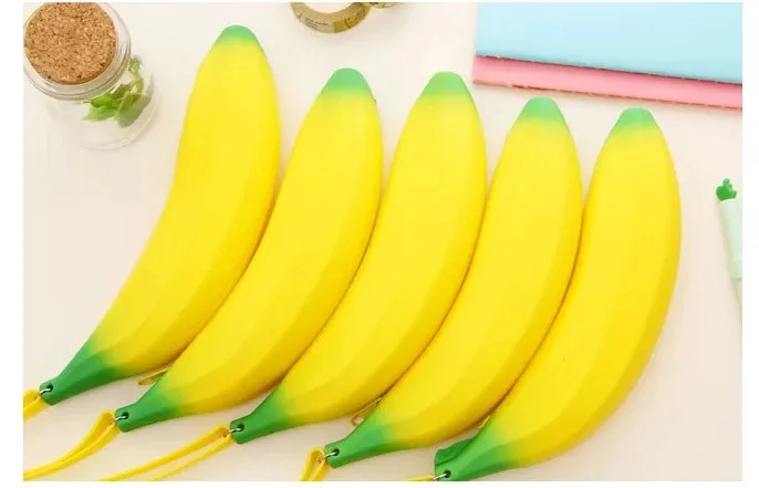 Custom Kawaii Cute Cartoon Stationery Pouch Bag Novel 3D Small Silicone Silicon Banana-Shaped Pencil Case for School Kids Girls
